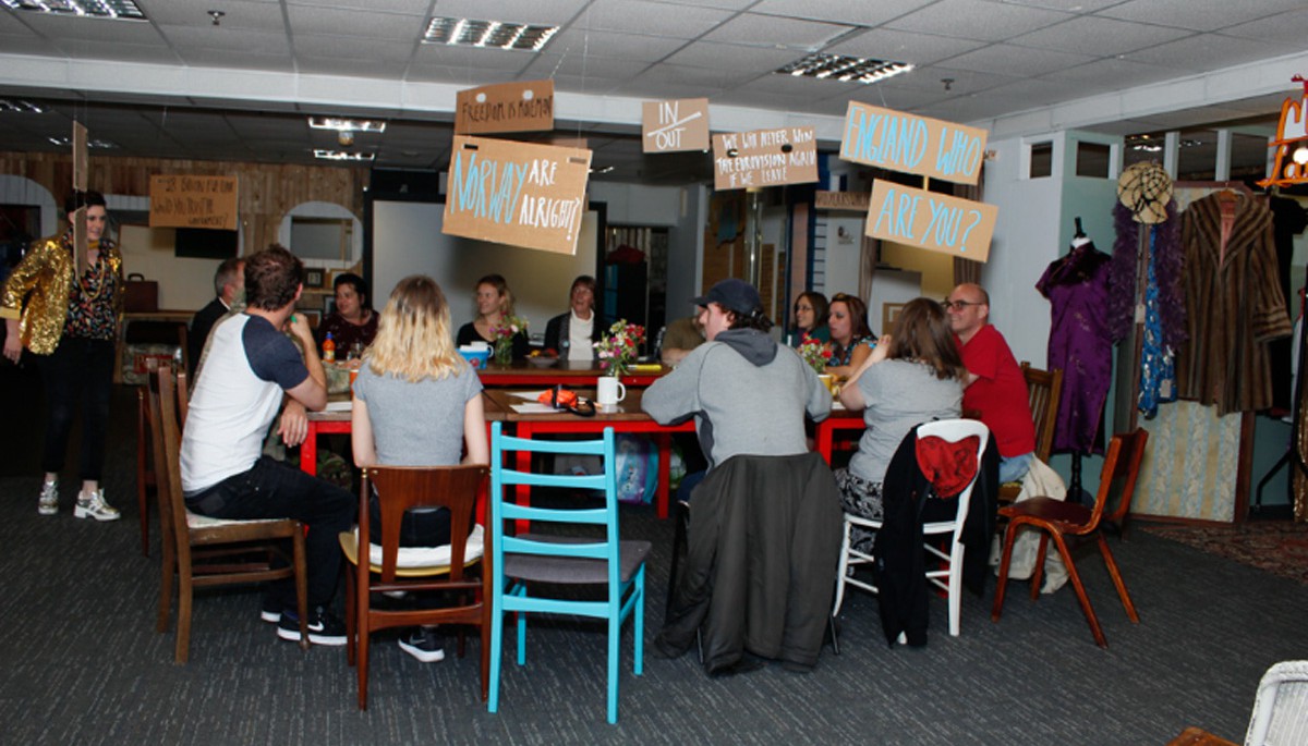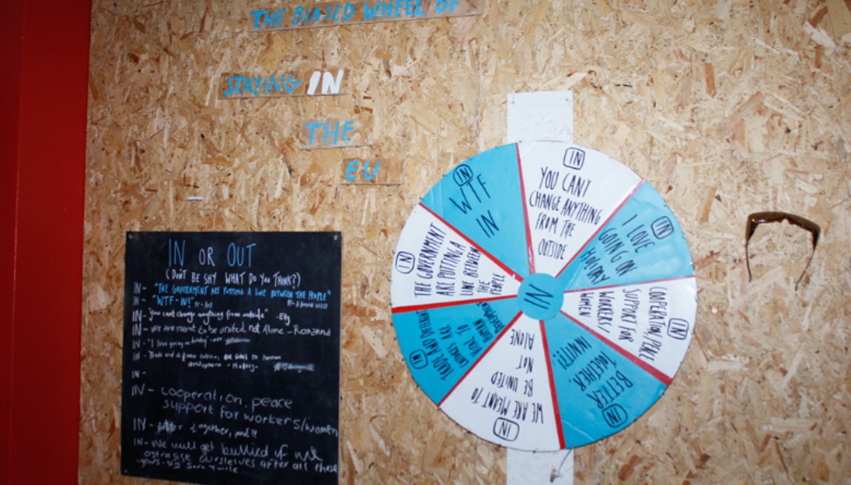 In fact, the process of community engagement manifests The Arcade of Nelson as much as the sculptural objects do. As well as the workshops, Amy is programming a series of public events under the name ‘Arcade of Nelson’, which develop the arcade not only as a symbolic space for an imagined community, but also as a symbolic community in its own right. In June 2016, for example, Arcade of Nelson presented an ‘In and Out Party’, themed around the upcoming referendum on membership of the EU. Through conversations, cups of tea and games, the event facilitated real debate about a notoriously divisive issue, among a divided public. In this way, the Arcade occupies a space full of potential – the potential for community, for political change, and for future material conditions.
