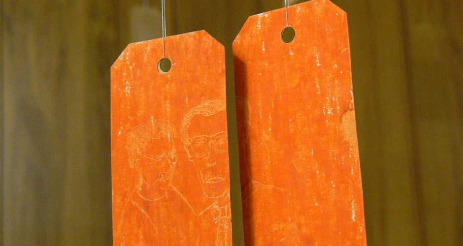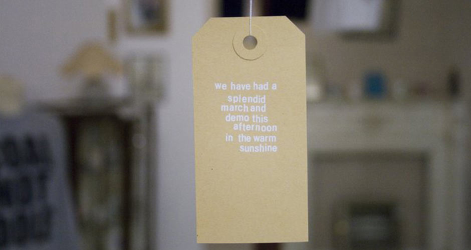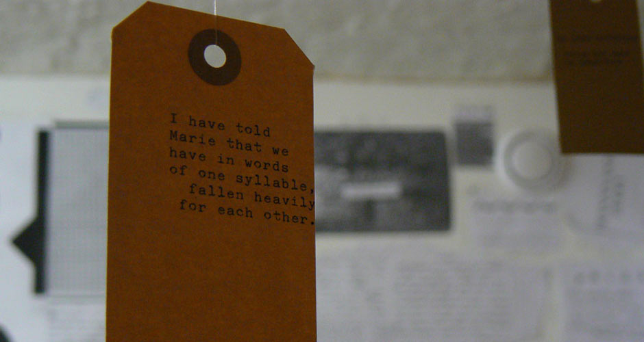 Using brown labels I selected specific text from the letters that subjects ranged from house work to politics to romantic sentiments. I typed, letterpress printed and letraset these texts and hung a hundred of these labels in the gallery. Accompanying these texts we’re a small number of drawings I made from their personal photograph collection.